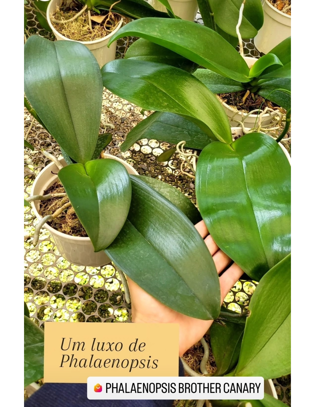 Tipo de cultivo: vaso com substrato à base de casca de pinus, carvão triturado, pedrisco no fundo para drenar.