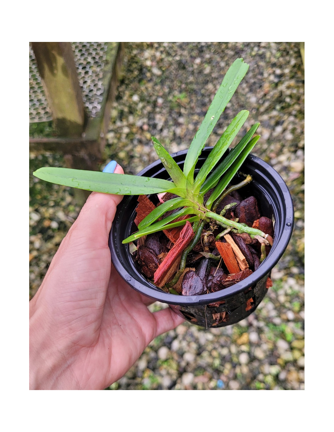 Tipo de cultivo: vaso com substrato à base de casca de pinus, carvão triturado, pedrisco no fundo para drenar ou boas placas rugosas de madeira.